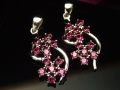 ◆超透明宝石質◆ツーソン展示会商品◆2輪のフラワーデザイン◆12石使用◆ロードライトガーネット ダブルフラワーデザインペンダントトップ◆全長約3cm◆Silver925◆【インド産】