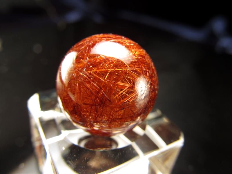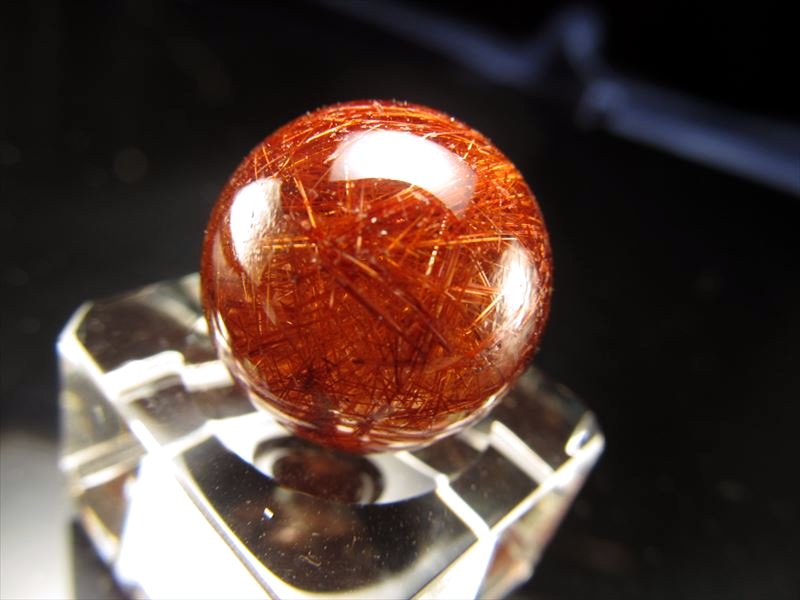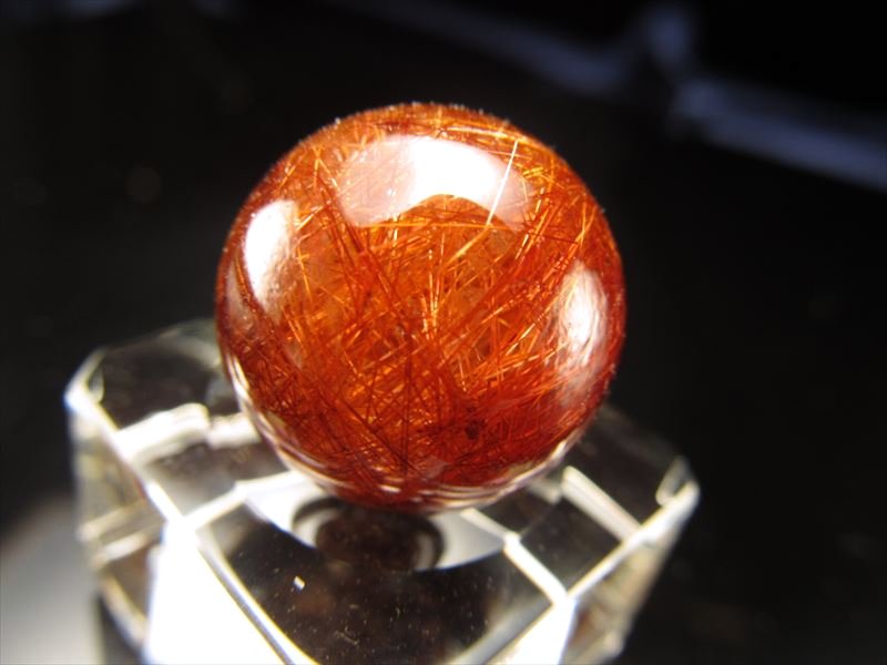★びっしり濃密レッドオレンジ針★透明度抜群★長寿・健康のヒーリングルチル★1点物★レッドオレンジルチルクォーツ丸玉★直径約18mm★約8.3g★携帯用ポーチ付き★【ブラジル産】