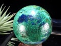 鮮やかなブルーと深みのあるグリーンが美しく混ざり合った、アズライトマラカイトの丸玉置物です!