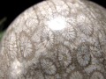 フォッシルコーラルならではの、花が咲いたような生成模様が球体全体に美しく浮かび上がる丸玉です。