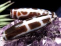 天珠とは紀元前からチベットに伝わるお守りで、瑪瑙(めのう)という石に特殊な腐食加工を施して紋様を描いたものです。