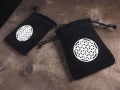 ブラックの生地にフラワーオブライフのデザインがプリントされています。