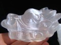 ◆迫力満点!龍頭彫り◆聖母マリアのガラス◆運気上昇のお守り◆インテリアや贈り物に◆天然ジプサム◆サティンスパーキャッツアイ◆セレナイト【透石膏】龍頭【ドラゴンヘッド】彫刻置物◆全長約8.5cm◆【メキシコ産】