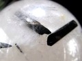 透明感のある水晶の中に、漆黒のブラックトルマリン結晶が力強く内包された、存在感抜群の丸玉です。