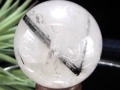 透明感のある水晶の中に、漆黒のブラックトルマリン結晶が力強く内包された、存在感抜群の丸玉です。