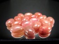 色合いはロードナイトらしい濃い赤色から、ローズクォーツのような淡いピンク、透明な水晶のなかに赤い粒々の結晶が浮かぶものなど、様々な姿で産出します。
