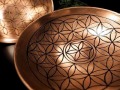 銅製のフラワーオブライフプレートは、美しいデザインと高品質な素材で仕上げられており、天然石やアクセサリーの置物として理想的です。