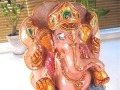 太鼓腹の人間の身体に 片方の牙の折れた象の頭をもった神で、4本の腕をもつ。障害を取り去り、また財産をもたらすと言われ、商業の神・学問の神とされています。