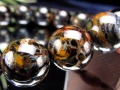深みのあるブルーをベースに、黒やブラウン、そして稲妻のように走るイエロー~ゴールドのラインが、一珠一珠に異なる表情を与えています。