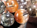こちらは、ゴールドルチルやブラックルチル、タイガールチルなど、様々な色合いのルチルが内包されたガーデンクォーツの珠を、ランダムに組み合わせたブレスレットです。