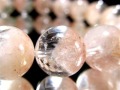 透明感の高い水晶の中に、やわらかなオレンジから淡い褐色のファントムがふんわりと広がる、非常に表情豊かなオレンジファントムクォーツブレスレットです。