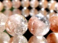 透明感の高い水晶の中に、やわらかなオレンジから淡い褐色のファントムがふんわりと広がる、非常に表情豊かなオレンジファントムクォーツブレスレットです。