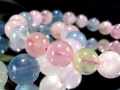 優しいピンク、爽やかなブルー、淡いグリーンやクリアカラーが美しく溶け合う、透明感あふれるMIXベリルブレスレット。