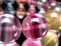 こちらは、イエロー、グリーン、パープル、バイカラーなど、様々な色のフローライトをミックスしたブレスレットです!