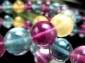こちらは、イエロー、グリーン、パープル、バイカラーなど、様々な色のフローライトをミックスしたブレスレットです!