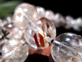 透明度の高い水晶の中に、赤褐色~ゴールド系のフォリエーテッド(葉片状)マイカが内包された、個性あふれるブレスレットです。