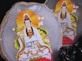 ★デザイン瑪瑙(メノウ)プレート★使い方様々★アゲートコースター★いろいろな角度で楽しめる2way★【聖観自在菩薩デザイン】アゲートスライスプレート 置物★【タイプM】石サイズ縦約10-12cm★華やか木製台座付き★【ブラジル産】