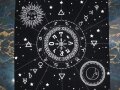 白字の占星術デザインが神秘的な雰囲気を醸し出します。