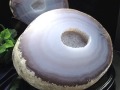 天然のアゲートジオードを開くと現れる、まるで銀河の中心のようなシンメトリ模様と神秘的な結晶層。