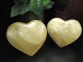 ★ぷっくりハート★レモンイエロー&白色縞模様★ツーソン展示会商品★繁栄と商売繁盛の象徴★レモンイエローカルサイト【方解石】ハート置物★【メキシコ産】