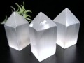 セレナイトといえば、シルキーな光沢の繊維質を持ったホワイトカラーが一般的で、丸玉やタワーなどの加工品がよく流通しています。