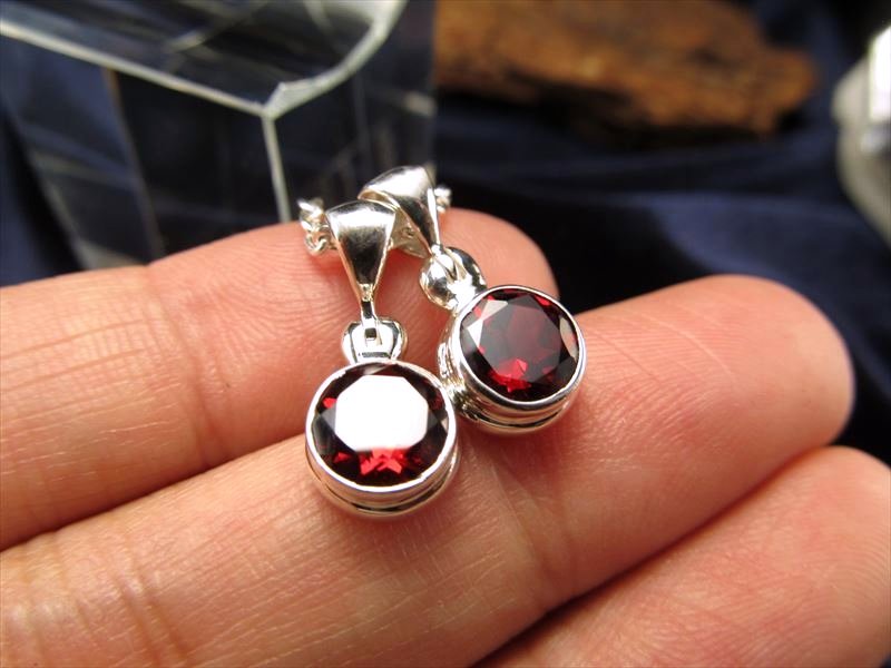 ★宝石質★AAAAA★ツーソン展示会商品★超透明・濃厚レッド★Silver925★アルマンダインガーネット ラウンドカットペンダント★【インド産】