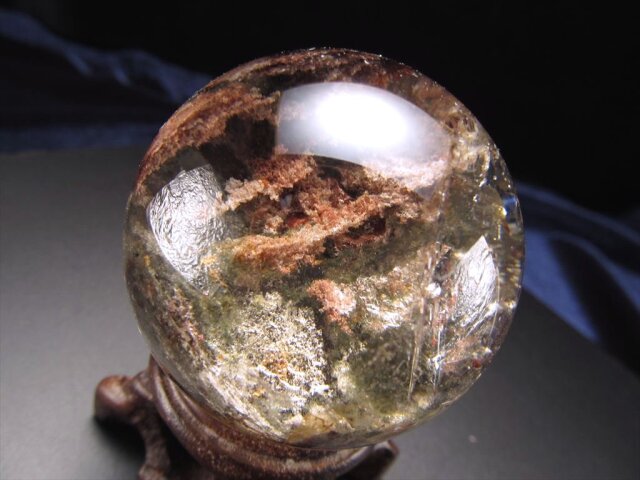 ★数量限定入荷!★高品質グレード!★超透明!★自然の作り出す造形美★幻想的風景を閉じ込めた水晶丸玉★1点物★透明!ガーデンクォーツ【庭園水晶】丸玉★直径約45.1mm★重さ約125.2g★木製台座付き★【ブラジル産】