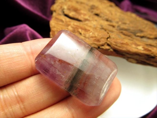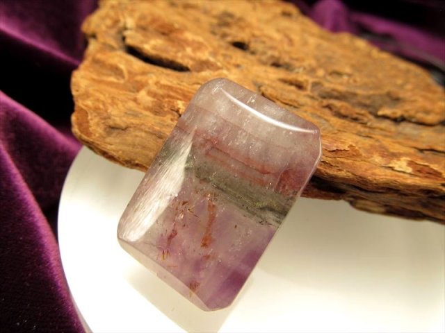 ◆激レア!◆神秘のグラデーション◆1点物◆他鉱物を閉じ込めた水晶◆成長層スーパーセブン つやつやスクエアプレート◆サイズ縦約30.3mm◆約11.1g◆ポーチ付き◆【ブラジル産】