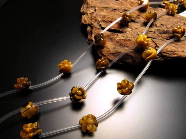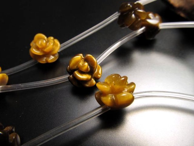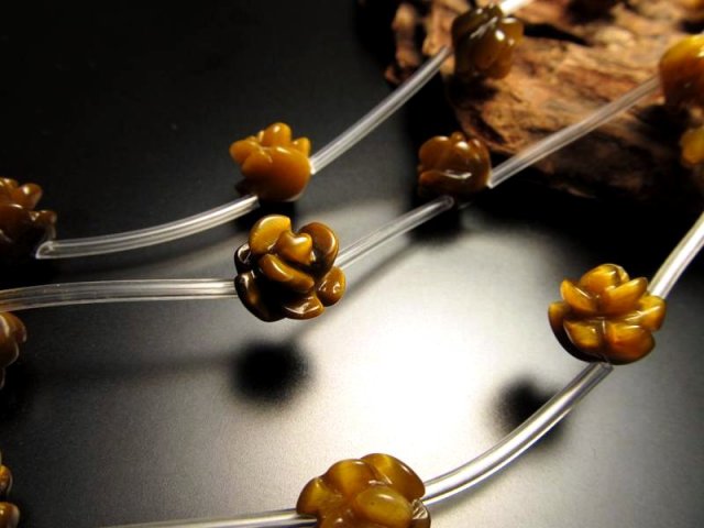 • ◆10mm◆薔薇彫り◆一連【15珠】◆手彫り薔薇彫り【タイガーアイ】◆15珠付き◆【南アフリカ産】