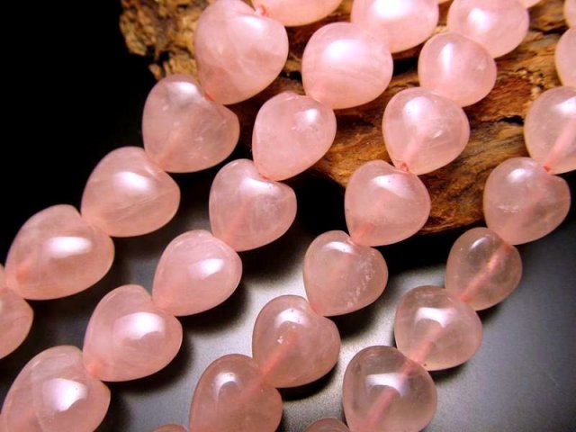 • ★ハート型★約12mm★一連★ローズクォーツ【紅水晶】ハート型★約38-40cm★【ブラジル産】