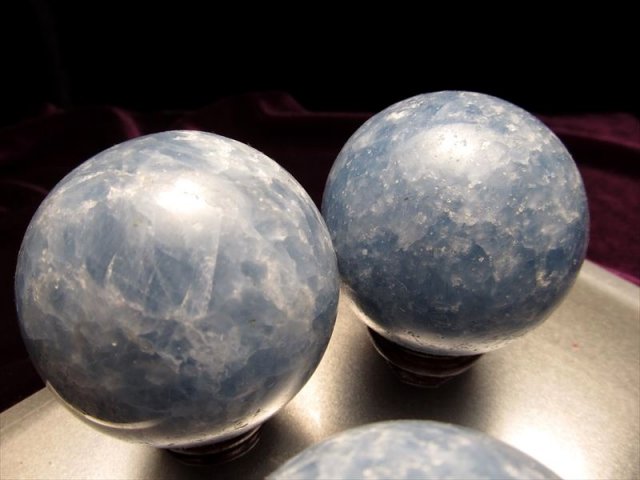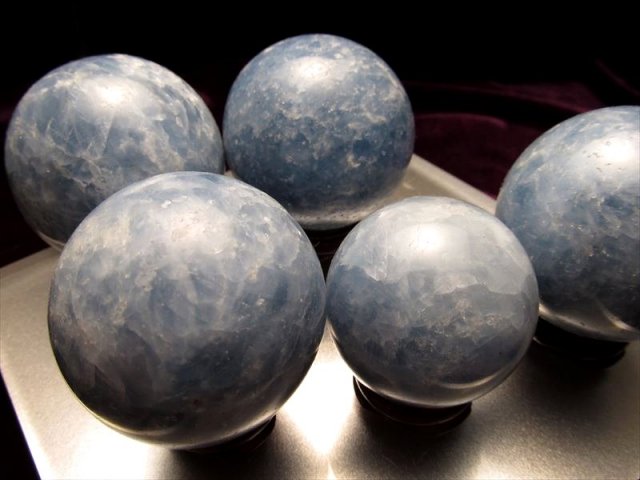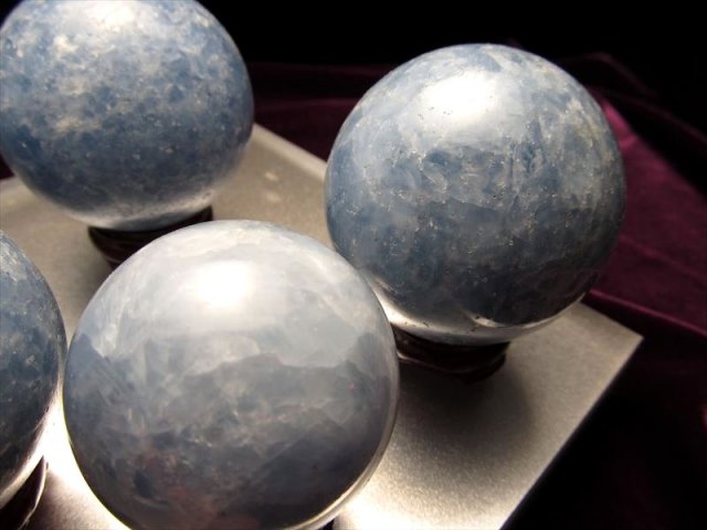 ★濃いブルー★ サイズD ★海王星の様な丸玉★神秘的なディープブルー★フランス展示会商品★マダガスカル産 濃いブルーカルサイト丸玉★木製台座付き★直径約52-55mm★1個1390円★