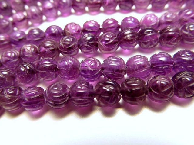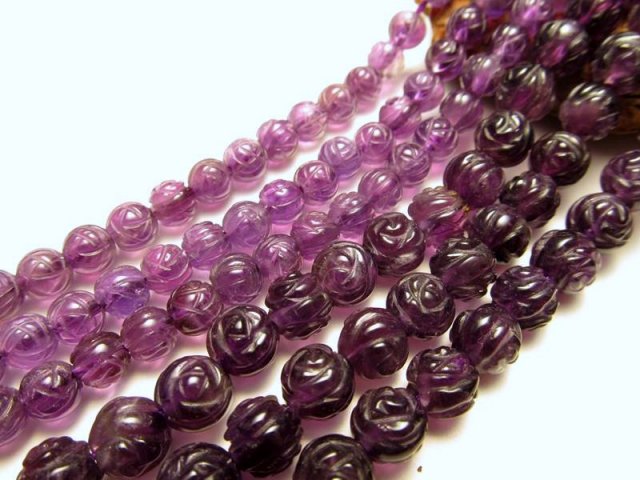 • ★薔薇カット★約6mm珠★一連★アメジスト【紫水晶】薔薇カット★約38-40cm★【ブラジル産】