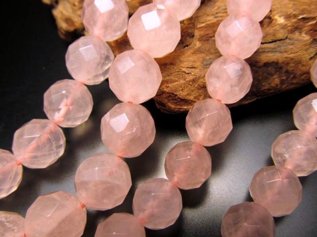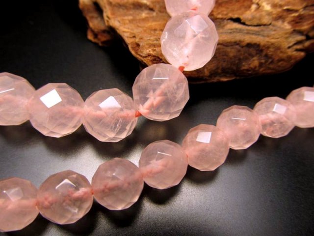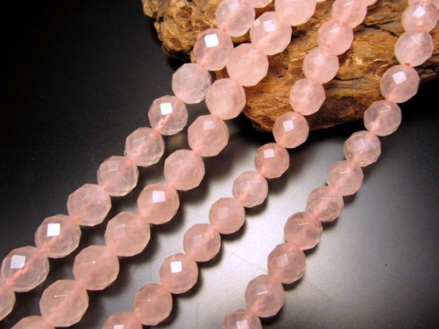 • ★64面カット★約12mm珠★一連★ローズクォーツ【紅水晶】64面カット★約38-40cm★【ブラジル産】