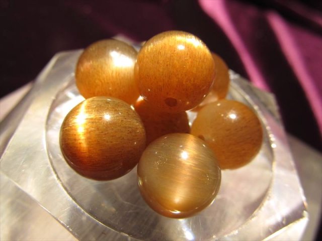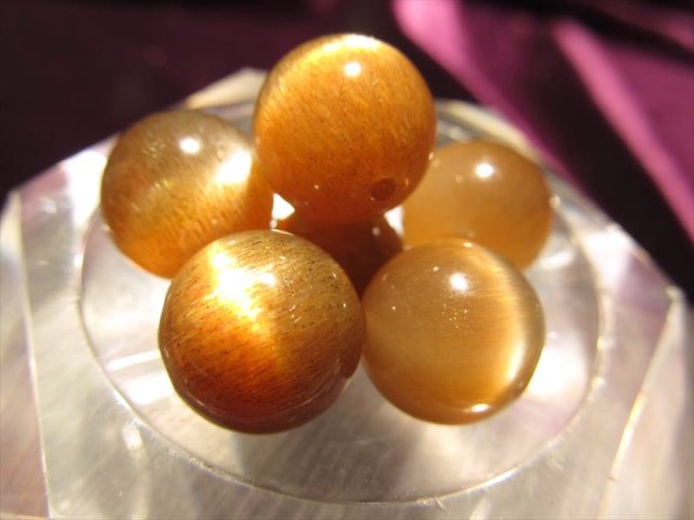 【1粒売り】★激レア!★スター&シラー効果★AAAAA★極上キャッツアイ スターサンストーン・ビーズ石★約10mm ★【インド産】≪2X3≫