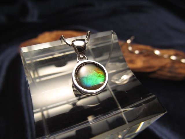 ★生物起源の虹色宝石★極上レインボーアンモライト★AAAAA★1点物★レインボーアンモライトペンダントトップ ラウンド形★サイズ縦約9.6mm★Silver925★【カナダ産】