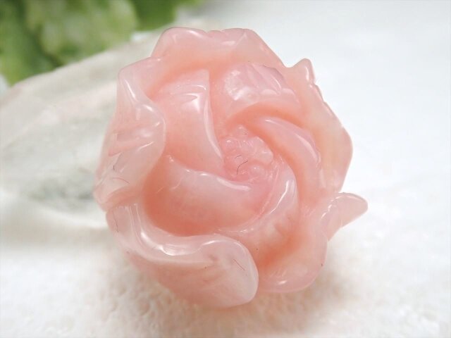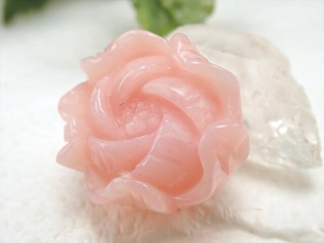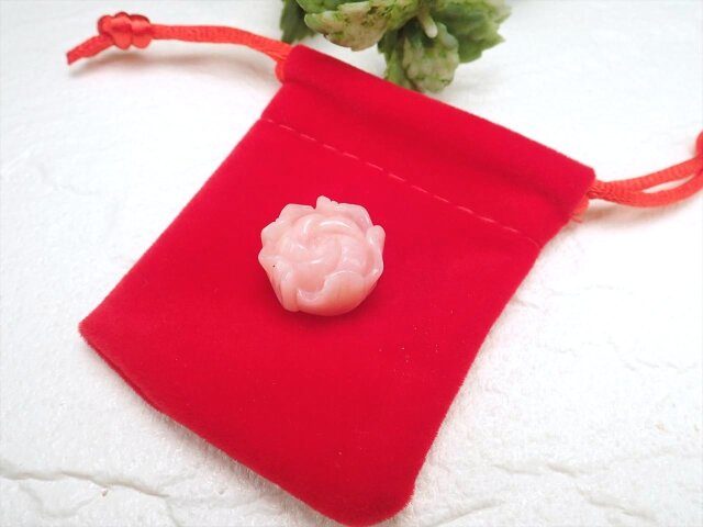 ★『愛』と『美』のシンボル★上品パステルピンク★愛され力最強の組み合わせ★10月の誕生石★ペンダントの作成やお守りにも★1点物★ピンクオパール【蛋白石】薔薇型ルースタンブル★幅約18mm★約4.2g★ポーチ付き★【オーストラリア産】