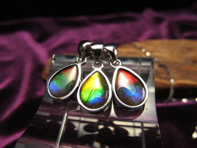 ★極上レインボーカラー!★生物起源の宝石★AAAAAトップグレード★Silver925★アンモライトペンダントトップ ティアドロップ形Mサイズ★サイズ縦約11.6mm★【カナダ産】