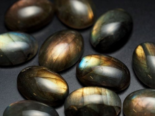 ◆激安!カボション◆ツーソン展示会商品◆1点300円◆月と太陽の象徴◆レインボーシラー◆ラブラドライト ルースタンブル【オーバル形】◆サイズ縦約14mm◆【マダガスカル産】