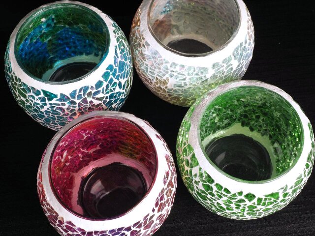 ◆華やかで温かみのあるモザイクガラス◆ひとつひとつ手作り◆個性豊かなハンドメイド◆アロマキャンドルやディフューザーポットとしても◆やわらかな光と癒しの香りで最高のリラックス空間を◆モザイクガラス キャンドルホルダー◆4カラー◆キャンドル付き◆