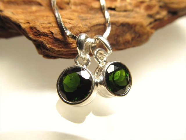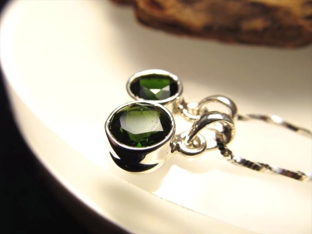 ★宝石質★5A★アメリカ・ツーソン展示会商品★濃厚グリーン&透明上質★Silver925★ロシア産クロムダイオプサイトペンダント【ラウンドカット】★縦約8mm◆TC◆