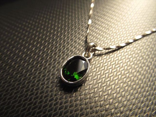 ★宝石質★5A★アメリカ・ツーソン展示会商品★濃厚グリーン&透明上質★Silver925★ロシア産クロムダイオプサイトペンダントトップ【オーバルカット】★縦約10mm◆TC◆
