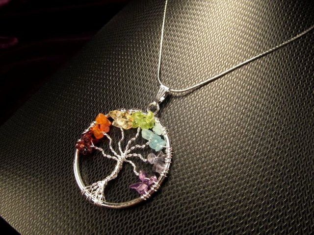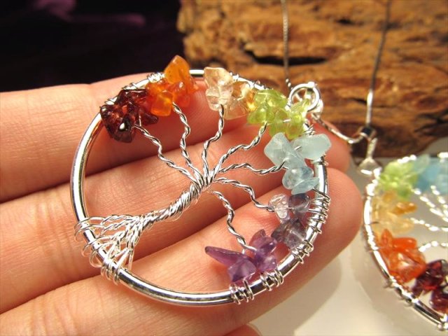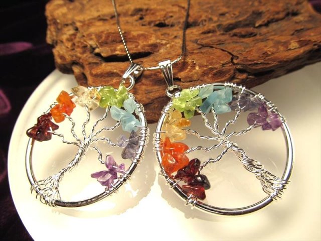 ★世界を体現する木!★世界樹モチーフ サークルペンダントトップ★7種の宝石質世界樹(ワールドツリー)チャクラペンダントトップ★幅約38mm★