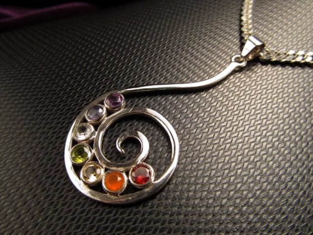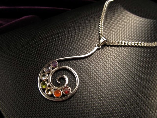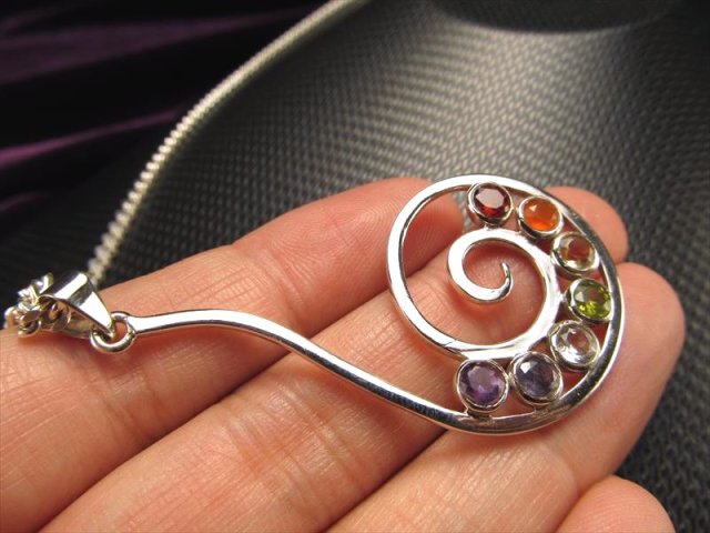 ★幸運を巻き取る★チャクラストーン7種★宝石質★5A★7チャクラ・渦巻きペンダントトップ★Silver925★縦約52mm★石サイズ縦約4mm★