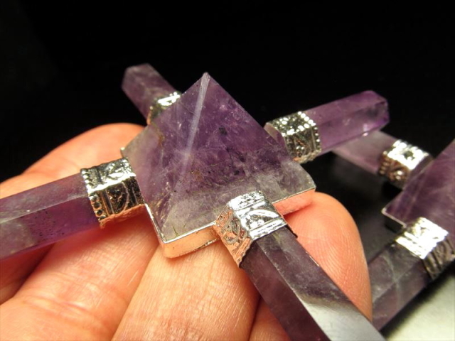 ★フランス展示会商品★空間の浄化 ブレスレットの浄化にも★4本アメジストポイント★1個1980円★ピラミッドアメジストジェネレーター★幅約7.5cm★