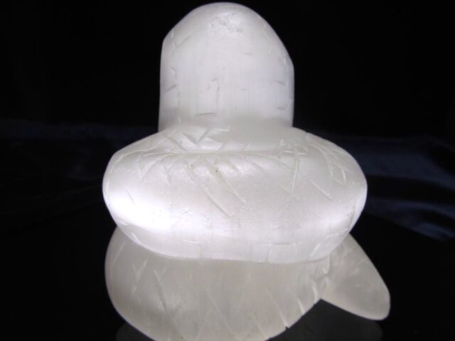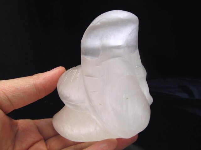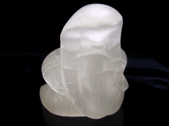 ★幸運のシンボル!白蛇モチーフ★聖母マリアのガラス★金運上昇のお守り★インテリアや贈り物に★1点物★セレナイト【透石膏】白蛇彫り置物★最大幅約8.5cm★約482g★【メキシコ産】
