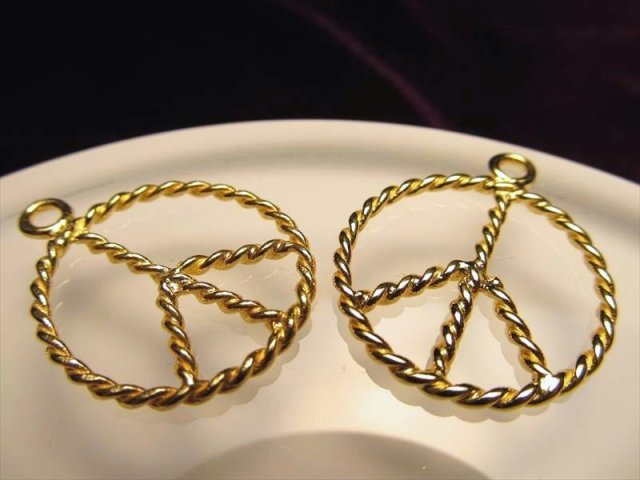 ◆高品質Silver925パーツ◆使い方様々!手作りアクセサリーのアクセントに!◆ピースマークチャーム◆カン穴内径約3mm 縦約28.9mm◆18金ゴールド仕様◆CMP012◆