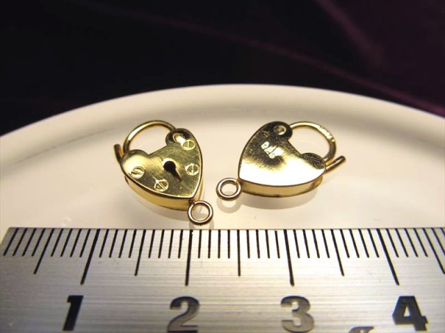 ◆高品質Silver925パーツ◆使い方様々!手作りアクセサリーのアクセントに!◆ハートロックチャーム◆カン穴内径約1.7mm◆18金ゴールド仕様◆CMP054◆