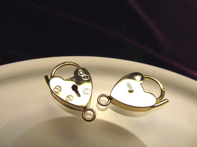 ◆高品質Silver925パーツ◆使い方様々!手作りアクセサリーのアクセントに!◆ハートロックチャーム◆カン穴内径約1.7mm◆14金ゴールド仕様◆CMP055◆