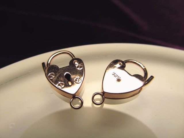 ◆高品質Silver925パーツ◆使い方様々!手作りアクセサリーのアクセントに!◆ハートロックチャーム◆カン穴内径約1.7mm◆ピンクゴールド仕様◆CMP056◆