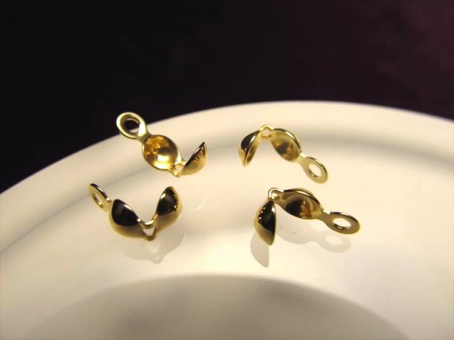 ◆高品質Silver925パーツ◆手作りアクセサリーの必需品!◆1セット10個入り◆ボールチップ◆カン穴内径1.2mm つぶし部分約3.7mm◆18金ゴールド仕様◆ETC074◆